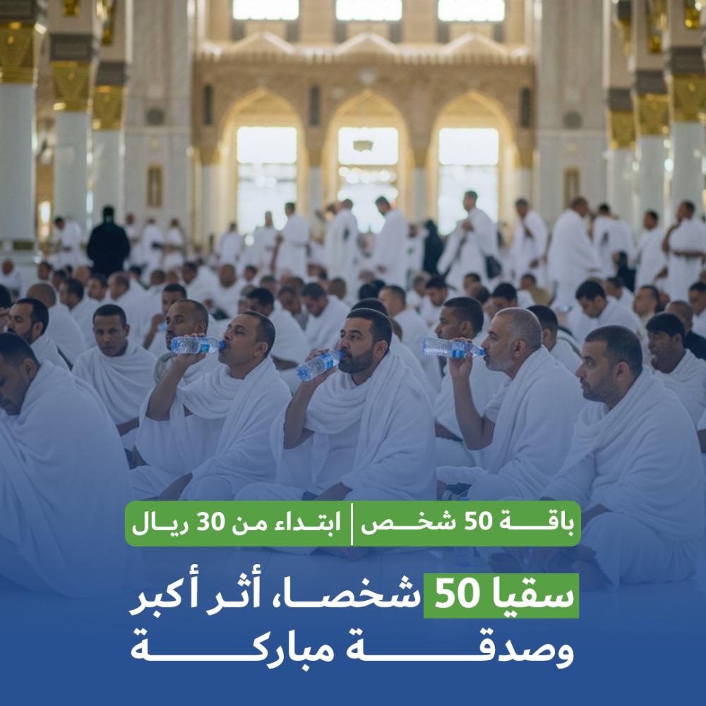 وسّع دائرة عطائك واختر باقة سقيا الماء في الحرم إحسان 50 شخص داخل الحرم… مبادرة واضحة العدد… وأثر مباشر في خدمة المعتمرين.