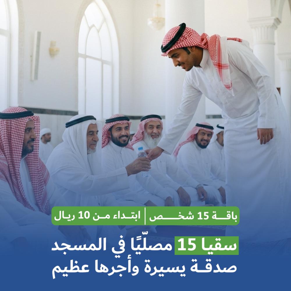- تشمل خدمة سقيا الماء للمساجد توريد مياه شرب موثوقة تكفي 15 مصلي.